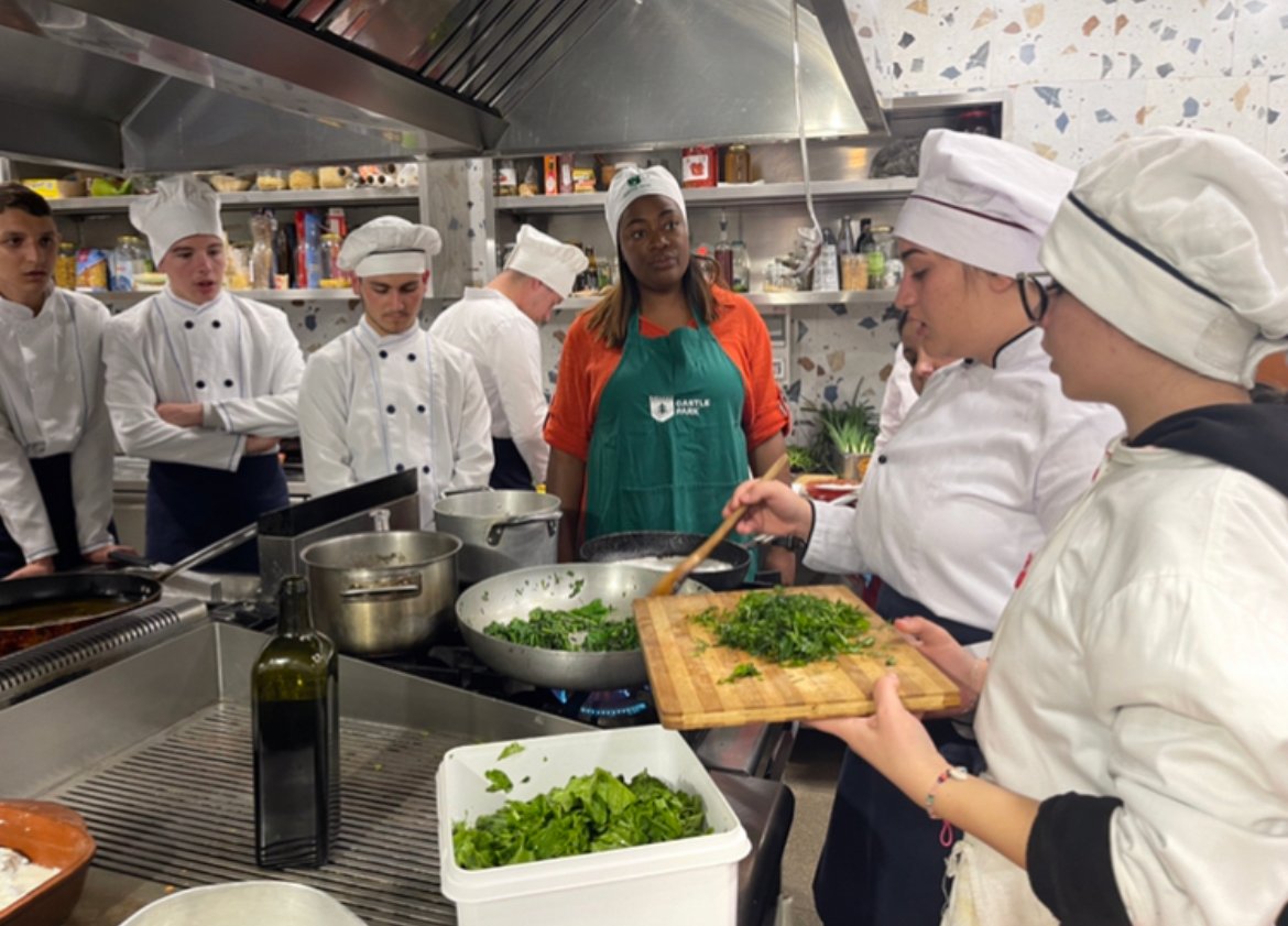 Me atë vaj dhe produkte të tjera të freskëta të stinës, ata gatuan ushqime tradicionale të teksasit dhe shqiptare në kuzhinën komode të Hotel Castle Park Berat , shtëpia e Slow Food Berat.